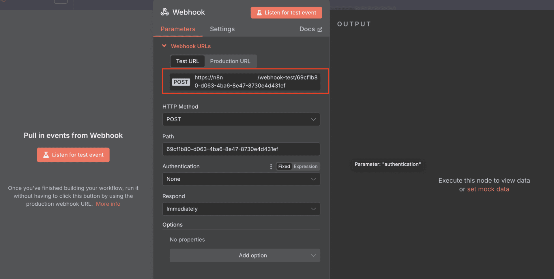 Obtain the Test URL. n8n will now show you a Test URL. Copy it. You’ll need it in the next step.