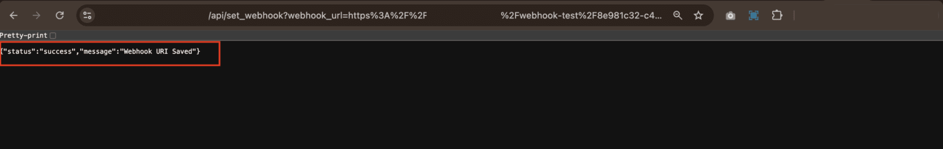 ⚠️ IMPORTANT: Once you exit test mode and activate your n8n workflow, n8n will give you a new production webhook URL, like: https://n8n.com/webhook/incoming. At that point, repeat the same process: Encode the new URL, build the final link again and open it in your browser to update the webhook. We’ll detail this step further in this article.